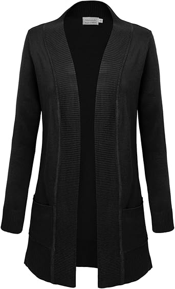 Suéter largo de manga larga para mujer, color negro, informal, holgado, abierto, de punto, talla grande, chaqueta de punto con bolsillo : Amazon.es: Ropa