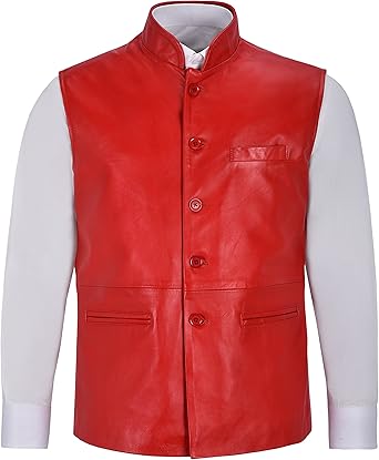 Gilet en Cuir pour Hommes Rouge Col Mandarin Indien Veste Ethnique Vraie Napa 3946: Amazon.fr: Vêtements et accessoires