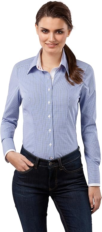 Vincenzo Boretti Chemisier Femme, Coupe Normale Modern-fit, Tissu Infroissable et Respirant - agréable à Porter, 100% Coton, uni avec triplure de Contraste: Amazon.fr: Vêtements et accessoires