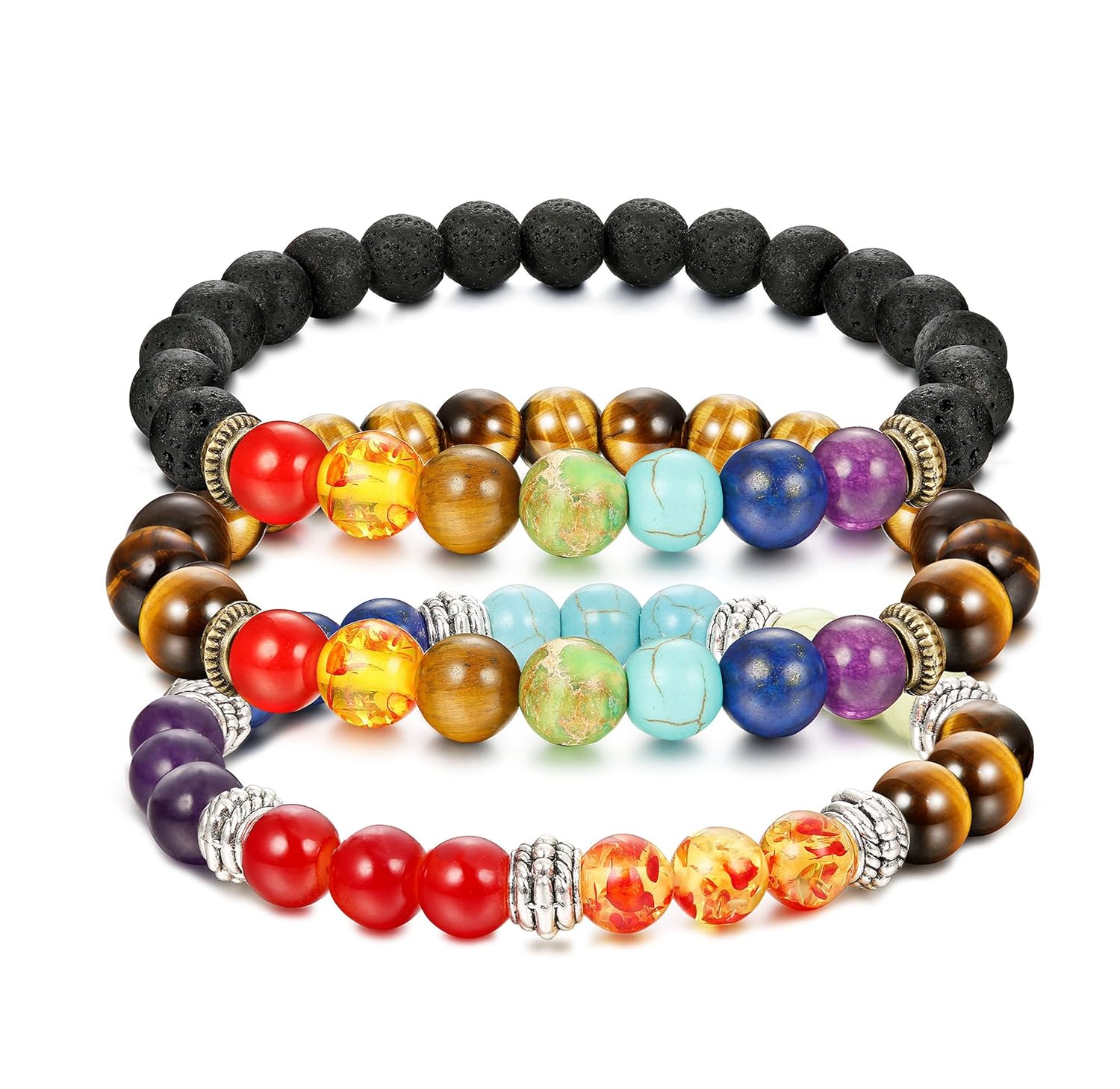 Homme sailimue 3 Pcs 8mm Perle Bracelet 7 chakras Pierre Bracelet Homme Femme Unisexe Oeil de Tigre Bracelet Pierre Volcanique Elastique Bijoux lemoncitylive.com